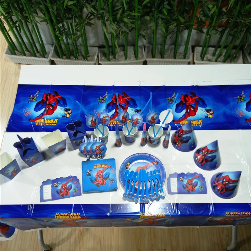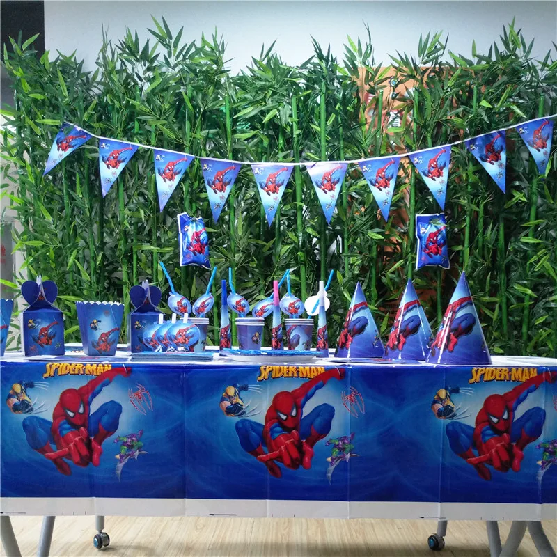 TOP 132pcs Flags Tablecloth Straws Cups Plates cup napkin Spiderman Party Supplies Kids Birthday Superh