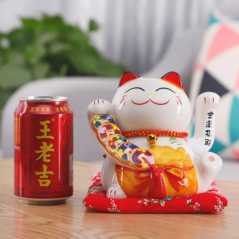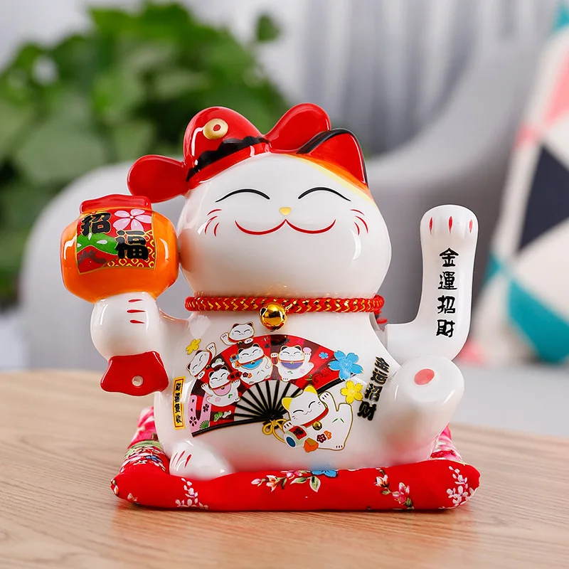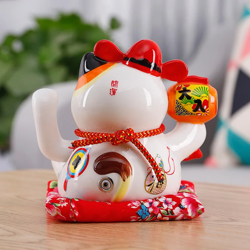 Chinese Electric Hand Feng Shui Cat Small Ornaments Ceramics Rich Cat Office Home Store Opening Cre