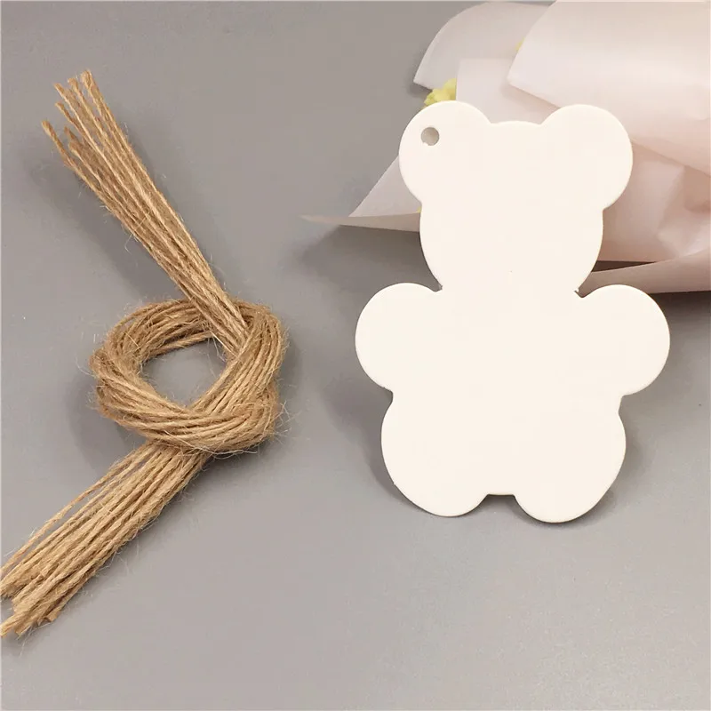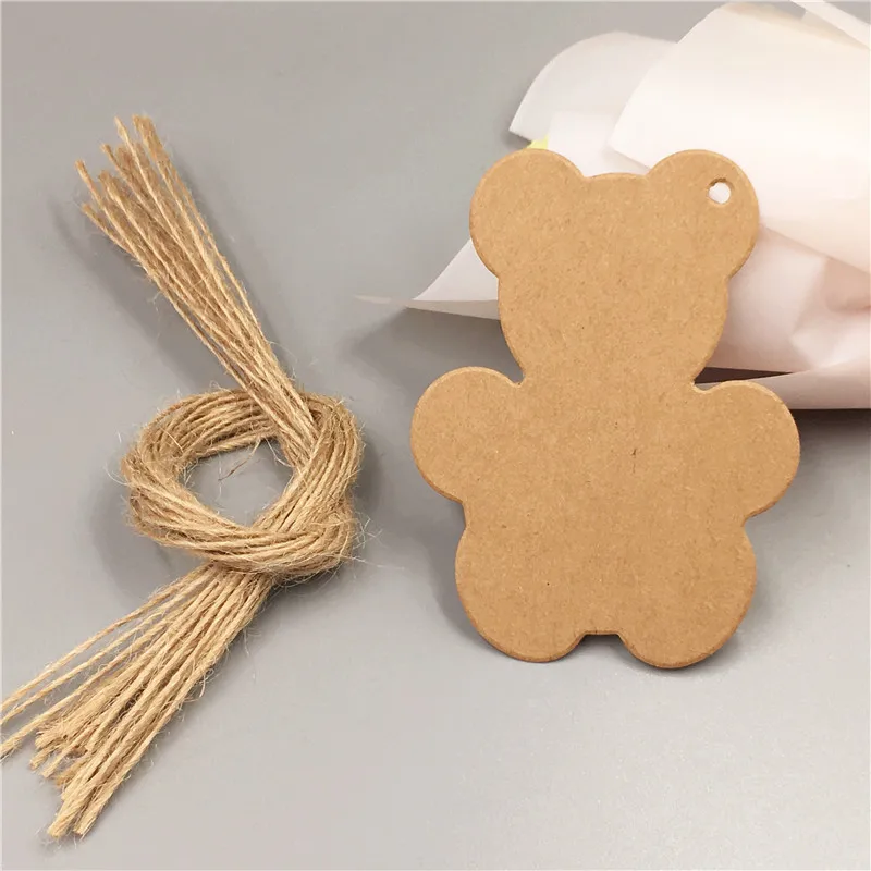 100Pcs 8x6cm Kraft Paper Card Tag+100 Strings Price Label With Lovely Bear Design For Birthday Cake